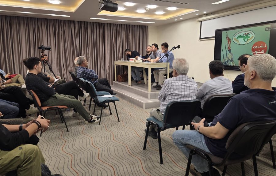 مشاركة الرفيق عماد أسعد منسق حملة استح في ندوة بعنوان “المقاطعة بعد عام من الطوفان” والتي شارك فيها أيضاً، محمد العبسي...